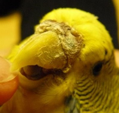 Tutaj papużka ma zarówno przerośniętą woskówkę (tzw.
