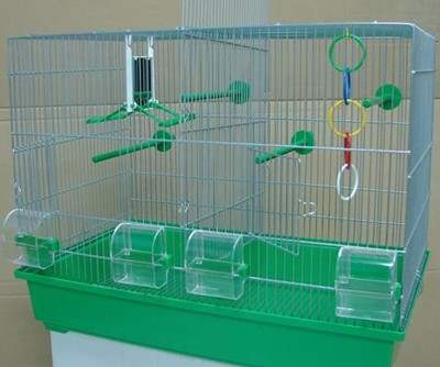 Typowa klatka z zewnętrznymi karmikami (poza karmikami