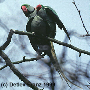 Aleksandretta większa (Psittacula eupatria) w Wiesbaden